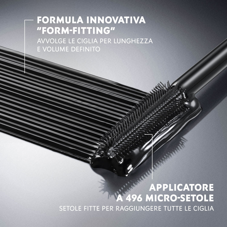 MASCARA ALLUNGANTE dal VOLUME DEFINITO, per ciglia fino a 1.6* volte più lunghe. Dona alle ciglia volume + senza grumi, ed un “effetto lift” incurvante a tenuta 24H**.